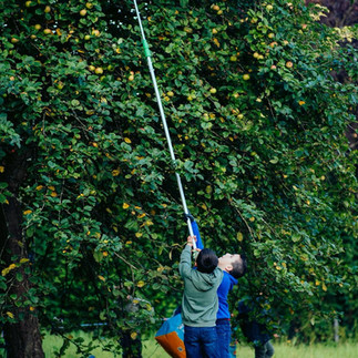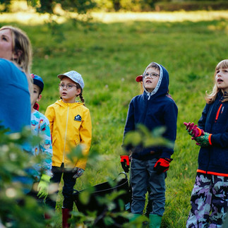 Die Klassen 2a, 2b und 3 haben heute eine große Apfelernte mit Apfelpflücker, Körben und Anhänger auf der Schul-Wiese gestartet!