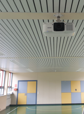 In der Sporthalle wurde in den Ferien ein Beamer installiert, der uns nicht nur bei Festen und Feiern, sondern auch im Sportunterricht ermöglicht, Dinge zu präsentieren!